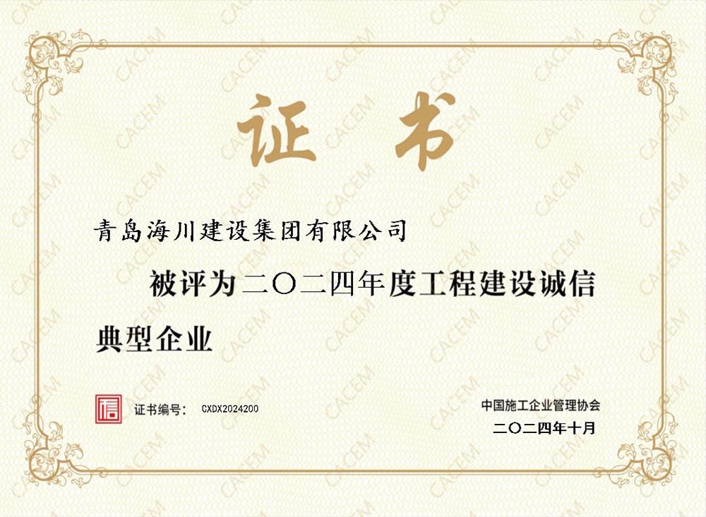 青島海川建設(shè)集團(tuán)榮獲工程建設(shè)誠(chéng)信典型企業(yè)等多項(xiàng)榮譽(yù)2024-10-31為全面推進(jìn)工程建設(shè)行業(yè)信用體系建設(shè),樹立誠(chéng)信建造品牌,營(yíng)造良好信用環(huán)境,中國(guó)施工企業(yè)管理協(xié)會(huì)繼續(xù)開展本年度工程建設(shè)誠(chéng)信典型企業(yè)評(píng)估工作,經(jīng)企業(yè)申報(bào)、評(píng)選、公示、公布,青島海川建設(shè)集團(tuán)有限公司成功獲評(píng)工程建設(shè)誠(chéng)信典型企業(yè)榮譽(yù),連續(xù)5年榮獲此殊榮。在中國(guó)施工企業(yè)管理協(xié)會(huì)開展... -