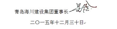 在2016年即將到來之際,我謹(jǐn)代表青島海川建設(shè)集團(tuán),向所有關(guān)心和支持我們企業(yè)發(fā)展的各級領(lǐng)導(dǎo)、各界朋友致以誠摯的新年祝賀!同時向一年來努力工作、忘我奉獻(xiàn)的全體股東和廣大員工致以新年祝福!向奮戰(zhàn)在海外和埠外項目上的全體員工及其家屬致以親切的問候和衷心地感謝!