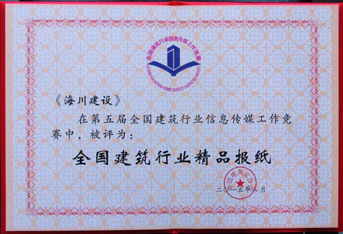 8月26日,中國(guó)建筑業(yè)協(xié)會(huì)在大連召開的全國(guó)建筑行業(yè)信息傳媒工作經(jīng)驗(yàn)交流會(huì)上,向第五屆全國(guó)建筑行業(yè)信息傳媒工作競(jìng)賽的優(yōu)勝者頒發(fā)了獎(jiǎng)杯和榮譽(yù)證書。海川集團(tuán)被評(píng)為“全國(guó)建筑行業(yè)信息宣傳先進(jìn)集體”,公司網(wǎng)站被評(píng)為“全國(guó)建筑行業(yè)精品網(wǎng)站”,《海川建設(shè)》企業(yè)報(bào)被評(píng)為“全國(guó)建筑行業(yè)精品報(bào)紙”,王修岐同志被評(píng)為“全國(guó)建筑行業(yè)信息宣傳優(yōu)秀工作者”。