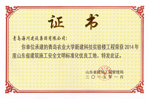 最近,七分公司青島農(nóng)業(yè)大學(xué)新建科技實(shí)驗(yàn)樓工程先后從山東省建筑工程管理局捧回了分別于2015年一月和二月頒發(fā)的兩項(xiàng)省級(jí)榮譽(yù)證書——榮獲“2014年度山東省建筑施工安全文明標(biāo)準(zhǔn)化優(yōu)良工地”和榮獲“2014年度山東省優(yōu)質(zhì)結(jié)構(gòu)杯獎(jiǎng)”。消息傳到工地,大家歡欣鼓舞,一年多的努力終于結(jié)出了豐碩的成果。