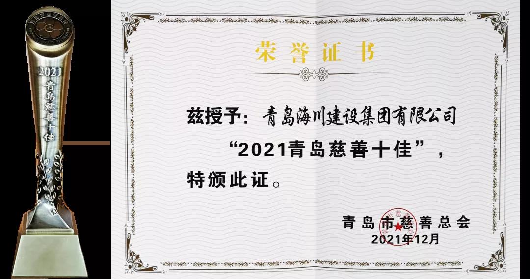1月7日晚,由青島市慈善總會(huì)主辦的“傳承慈善精神,共創(chuàng)美好未來(lái)”——青島慈善20周年暨2021“青島慈善十佳”頒獎(jiǎng)晚會(huì)在QTV-1新聞綜合頻道播出,青島海川建設(shè)集團(tuán)被授予“2021青島慈善十佳”稱號(hào)。
